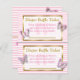 Cartões De Fralda De Borboleta Cor-De-Rosa E Dourada. Mande estes carros junto com os convites para o chá de bebê para pedir a cada convidado que traga um pacote de fraldas. Para cada convidado que traga fraldas, peça-lhes que assinem o seu nome e adicionem o cartão a um rifle. Enquanto você joga desenhar de jogos de chá de fraldas, um nome e o vencedor recebe um presente.