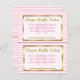 Cartões de Fralda rosa e Dourada Raffle. Mande estes carros junto com os convites para o chá de bebê para pedir a cada convidado que traga um pacote de fraldas. Para cada convidado que traga fraldas, peça-lhes que assinem o seu nome e adicionem o cartão a um rifle. Enquanto você joga desenhar de jogos de chá de fraldas, um nome e o vencedor recebe um presente.