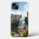 Foto de Rainbow Falls Waterfall com flor Fireweed em primeiro plano no Devils Postpile National Monument perto dos Lagos de Mammoth e na trilha John Muir / Caminho de caminhada na Selvagem de Ansel Adams, nas montanhas de Sierra Nevada, na Califórnia
