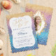 Celebre o aniversário da sua bela sereia com este moderno, e elegante convite de aniversário em escala de sereia do mar aqua. O design apresenta um arco-íris multicolorido, moderno e na moda, de cor-d-água, e uma imagem falsa de sereia dourada escamoteia padrão. Um estilo de escrita manual de na moda "debaixo do mar" é exibido lindamente no centro do design, juntamente com os detalhes do convite de aniversário, criando um aspecto limpo, elegante e moderno. O verso apresenta o mesmo arco-íris multicolorido com cor d'água na moda, e uma mescla de ouro suja, que reproduz um padrão com uma bela imagem elegante, com um espaço reservado para você substituir pela foto da sua aniversariante para um olhar verdadeiramente personalizado. Todas as ilustrações contidas neste arco-íris sob o convite de aniversário marinho são obras de arte originais desenhadas à mão pela Moodthology. Você pode personalizar a cor, o tamanho do texto, a cor do texto, a fonte e o layout para sua preferência de design pessoal.