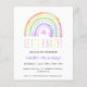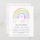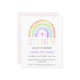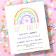 Convite personalizável de festa de aniversário do arco-íris, com um arco-íris e bolinhas coloridos, em tons de violeta, azul, roxo, amarelo, laranja, verde e cor-de-rosa sobre um fundo branco limpo. Este é um convite em papel de barato. Você é bem-vindo a visitar nossa loja Peony Design para comprar este convite no cartão ou como um digital para download.