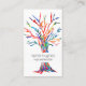 Cartão de visita de Instrutor do Rainbow Tree Yoga. Este cartão de visita único e colorido é decorado com um design de árvore salva-vidas original feito em mosaico usando fragmentos de vidro de cor clara. Personalize-o com seu nome e detalhes. Porque nós criamos nosso próprio trabalho de arte você não encontrará essa imagem exata de outros designers. Original Watercolor © Michele Davies.