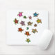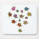 O Mousepad é ilustrado com tartarugas arco-íris multicoloridas dispostas em forma de coração.