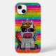 O unicórnio do arco-íris brilha intensamente com um efeito falso de brilho. O plano de fundo apresenta brilho brilhante. Disponível em outros personagens de desenho animados kawaii bonitos e muitas outras combinações de cores.