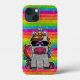 O unicórnio do arco-íris brilha intensamente com um efeito falso de brilho. O plano de fundo apresenta brilho brilhante. Disponível em outros personagens de desenho animados kawaii bonitos e muitas outras combinações de cores.