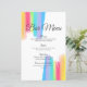 Um belo cardápio de natação em aquarela com pintura artística bonito traçada cheio de cor brilhante para um evento LGBTQ. O elegante roteiro cursivo destaca seu vinho de recepção clássico e sua lista de cerveja. Adicione à lista a descrição do cocktail, bebidas espirituosas e opções não alcoólicas.