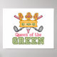 Uma coroa de joias de esmeralda e diamante rosa, um par de tacos de golfe rosas manuseados por mulheres e uma bola de golfe em uma vara de poster de golfe feminino que diz Rainha do Verde. Um presente bonito para uma dançarina, treinadora de golfe ou equipe de golfe para meninas. Projetado por Chrissy H. Studios, LLC.