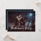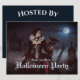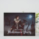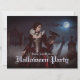 Uma mulher misteriosa em um creme e um vestido preto está entre túmulos antigos debaixo de uma lua de cheio brilhante. Lace, crânios, e uma ravina negra completam sua elegância estranha, como coalhada de névoa através dos portões sombreados do cemitério. Convite de Halloween