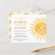 Convide a família e os amigos para o seu chá de fraldas temático com este belo convite para chás de fraldas. Apresenta o texto "A Little Ray Of Sunshine Is Quase Here" na tipografia da na moda com um lindo sol amarelo de aquarela. O dorso é decorado com um padrão de sol sorridente. Facilmente personalizável. Porque nós criamos a nossa trabalho de arte, você não encontrará esta imagem exata de outros designers. Original Watercolor © Michele Davies.