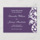 Um elegante design florescente branco é apresentado em um fundo roxo. Uma na moda para anunciar a data do casamento! Selecione o botão personalizar para alterar o estilo, a cor e o tamanho da fonte.