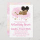 Dirigir por chá de fraldas com uma adorável menina africana com cabelo afro giro em um fundo de nuvem cor-de-água rosa bonito e dourada. Este convite para chás de fraldas online é facilmente personalizado para o seu evento com o texto da sua escolha. Todo o texto pode ser alterado para dizer o que você prefere.