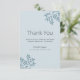 Um elegante funeral vertical, obrigado nota de cartão em tons azuis-verdes ilustrados por ramos de árvore com folhas nos cantos para obrigado daqueles que forneceram apoio durante um período difícil.