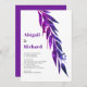 Ramificação de Eucalyptus no convite de casamento no inverno de cor roxa. Um design para o seu casamento outono com uma ramificação em cascata de folhas de eucalipto. O dorso é de cor roxa.
