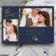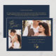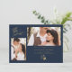Cartão de Convite de Casamento com Ramos Elegantes em Azul Marinho e 2 Fotos com Envelope.