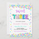 Crie memórias inesquecíveis com este convite para aniversário de 3 anos editável para as meninas — um convite digital lúdico, colorido e totalmente personalizável, projetado para tornar o grande dia do seu pequeno ainda mais especial. Apresentando um confete vibrante, fontes brancas e letras divertidas para "Doce TRÊS", é perfeito para uma alegre celebração infantil. Personalize facilmente o nome, data e hora em minutos — não é necessário ter habilidades de design. Ideal para imprimir ou enviar digitalmente via email ou aplicativos de mensagens. Quer seja uma festa no quintal, um playdate no interior ou uma festa de chá com amigos, este convite dá o tom para um evento alegre que seus hóspedes não esquecerão.