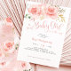 Uma Menina Doce Está A Caminho! Comemore a chegada do seu novo pacote de alegria com meu convite para chá de fraldas floral de cor-de-água e blush. Apresentando lindas flores pinceladas e cor-de-água rosa. Personalize este convite alegre com os detalhes do seu partido de forma fácil e rápida; pressione o botão personalizar para reorganizar e formatar o estilo e a colocação do texto. Incluía-se uma bonito coordenação do fundo floral de convite. Muitos itens correspondentes para concluir sua festa estão disponíveis em nossa loja Zazzle!