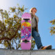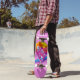 A menina do skater se regozija com as cores vibrantes e a luz do sol. Desenho do estilo Grafitti com muitas pinturas coloridas e manchas. Personalize de acordo com o seu gosto.