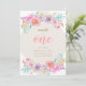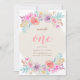 Um design de aquarela em flores pastel. Ideal para festas de jardim, decoração de chique, festas boêmicas boho, roteiro elegante. Com forma Geométrica moderna. Girl Watercolor Flowers Primeiro Convite de Aniversário. Um, 1, primeiro aniversário