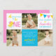 Girl Watercolor Rubber Duck 3 Photo Birthday Invitation - Inclui envelopes com espaço para 3 das suas fotos favoritas! Branco / Azul / Rosa / Amarelo