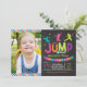 Este convite colorido para jogar e saltar é perfeito para sua casa de salto ou festa de aniversário de trampolim!