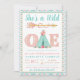 Rapariga selvagem um convites de festas de aniversários com bonito fenda azul-lacrimogênea e letras cor-de-rosa e douradas e setas em um fundo tribal azul-rosa e cor-de-rosa. Esses convites de festas de aniversários selvagens são facilmente personalizados para seu evento simplesmente adicionando seus detalhes.