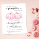 Um doce, alegre e econômico convite para bebês gêmeos, com "Duas Pequenas Bombeiras Doce Estão a Caminho" escrito numa mistura de tipografia moderna e roteiro de na moda de cinza, e uma aquarela de abóbora rosa pastel. Personalize o nome da mãe e os detalhes do chá em uma simples tipografia de cinza.