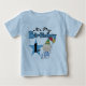 Camisas de aniversário do primeiro bebê, fatos-chave, cartões, autocolantes, ímanes, bolsas e outros presentes de primeiro aniversário com um bebê em fralda azul e chapéu de festa, uma estrela grande e balões!
