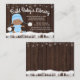 Rapazes trazem um chá de fraldas de livro com adorável bebê étnico vestindo uma roupa azul de inverno com chapéu em madeira rústica e fundo de floco de neve. Adicione seu texto à frente e de volta para personalizar o seu evento.