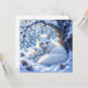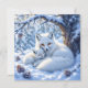 Uma doce raposas de inverno com o tema quebra-cabeça. Uma doce ilustração de duas raposas brancas, uma mãe e um bebê abraçando-se debaixo de uma árvore na neve.