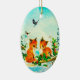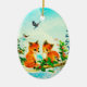 Uma ilustração invernal bonito de um par de Fox novo que recolhe & que fala com os pássaros selvagens da floresta entre a baga do azevinho e a terra coberto de neve. Os pinheiros e os cones do pinho decoram a área e uma mosca do Bluebird aéreas para juntar-se lhes todos. Faz uns enfeites de natal maravilhosos da lembrança para uma criança ou qualquer um que amem a natureza e os animais. O outro lado é um tom de prata - fundo textured do olhar com texto customizável e um único Bluebird na parte superior. Igualmente uma boa ideia do presente para um aniversário do inverno - ocasião especial demasiado. Este reversible - o ornamento frente e verso é de forma oval e pendura de um cabo goldtone. Uma ilustração adorável da natureza!