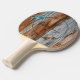 Raquete De Ping Pong Azul Desbotado Madeira Nome no Círculo Desenhado