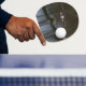 Uma águia careca com ponta de asa pastoreando a superfície de um lago. Foto de Richard Lee.
