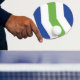 Ping Pong Paddle com uma design com a bandeira de Burlington, Vermont. Uma bandeira azul, branca e verde
