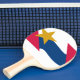Ping Pong Paddle com uma design com a bandeira de Lafayette, Indiana. Uma bandeira vermelha, branca e azul com uma estrela amarela