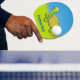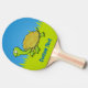 Ilustração animada de uma tartaruga feliz sobre grama verde sob o céu azul. Texto personalizado de ambos os lados.