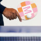 Custom monogram elegant pink and yellow geometric pattern ping pong paddle , cute square pink white and yellow monogram ping pong paddle.
