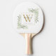 A cor aquosa elegante verde deixa uma pá de pingue-pongue com um monograma. Projetado por Thisnotme©