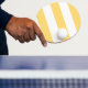 Raquete De Ping Pong Estrias Verticais Amarelas E Brancas