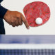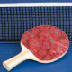 Esta pá de pingue-pongue é atraente para os olhos, com cinzas zunindo sobre um fundo vermelho brilhante.