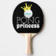 Mesa Ping Pong do Designer Pong Paddle com a citação de "Pong Princess" e o nome personalizado impresso com uma bola de ping pong vestindo uma ilustração da coroa tiara em preto e branco.