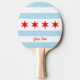 Ping Pong Paddle personalizável com bandeira da cidade de Chicago (maior cidade de Illinois), bandeira branca e azul clara listrada com quatro estrelas vermelhas