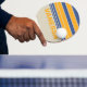 Raquete De Ping Pong Retro Blue Crush Sunset Horizon Striping with Name