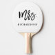 Esta pá à moda do pong do sibilo diz a "Sra." na tipografia preta na moda do roteiro, e igualmente tem um ponto para seu sobrenome.