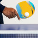 Raquete De Ping Pong Um pino pino pino com um design amarelo e azul