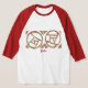 Camiseta de raglan branca e vermelha, de 3/4 mangas, com uma imagem de um ornamento vermelho, azul e paisley dourado, com o nome da deusa balinesa do amor romântico, desejo e prazer eterno, Ratih. O "Bali" opcional é impresso por baixo dele em um script vermelho. Veja toda a coleção de Roupa de Reprodução Bali na seção FAVORITOS PARA FESTAS.