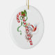 Enfeites de natal mostrado em forma redonda com um fundo branco com um impressão de mouse de papai noel de feriado bonito. Personalize este item ou comprar como está.