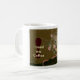 Uma caneca com meu "o que são eu que faço?" o desenho original imprimiu nele junto com o texto "que eu preciso meu café" coberto sobre um ponto de exclamação.