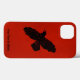 Uma simples silhueta preta de um Raven (Corvus corax) em uma imagem de fundo vermelha, de aparência de couro. A imagem raspada recebeu um ligeiro efeito "áspero" ou "vestido". Adicione seu próprio texto.
