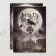 Trendy e assustador Raven no convite da festa do Dia das Bruxas de Graveyard que pode ser personalizado.