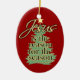Jesus é o motivo da temporada! Celebre o nascimento do Cristo com esse Enfeites de natal vermelho-na moda e verde com uma árvore verde-clara festiva com ornamentos brancos e estrela. Jesus na letra do script. Ornamento religioso cristão excelente.